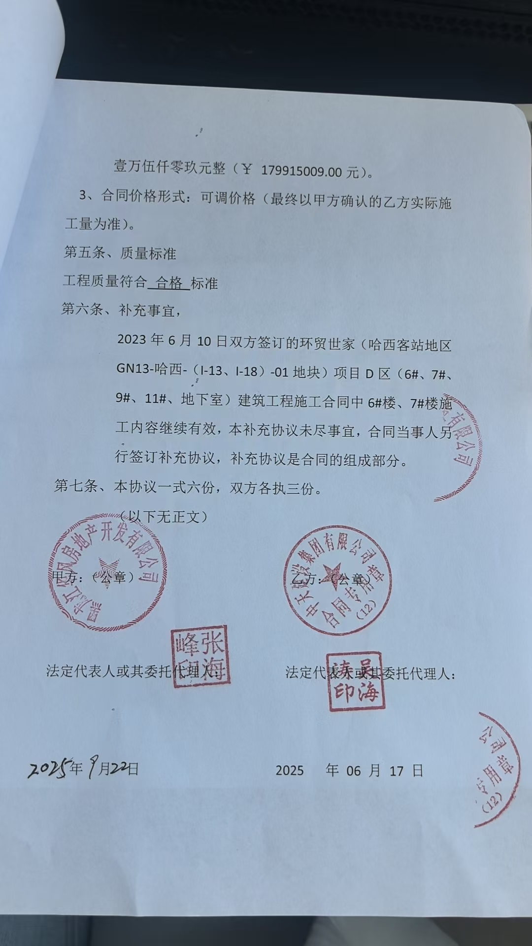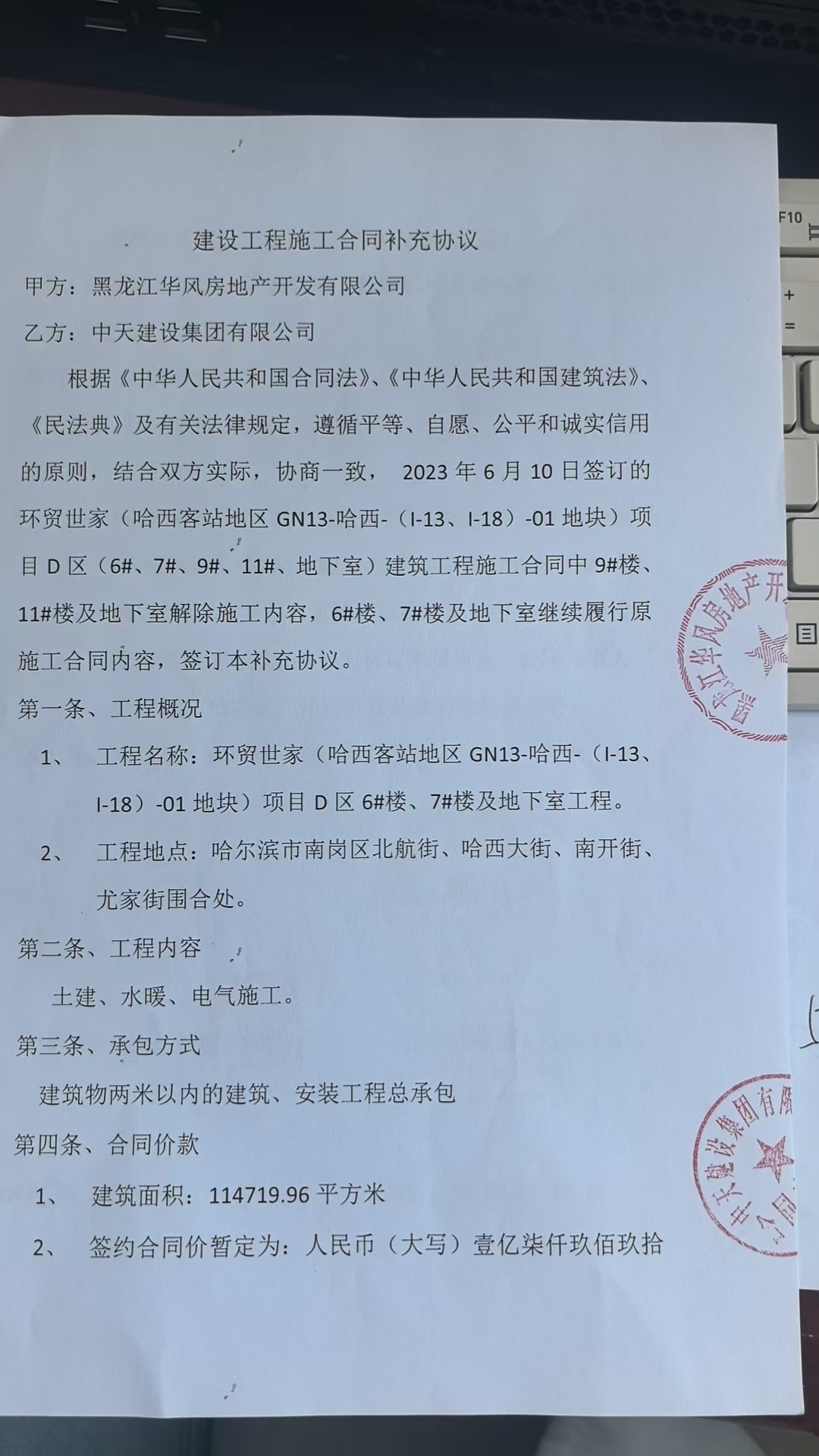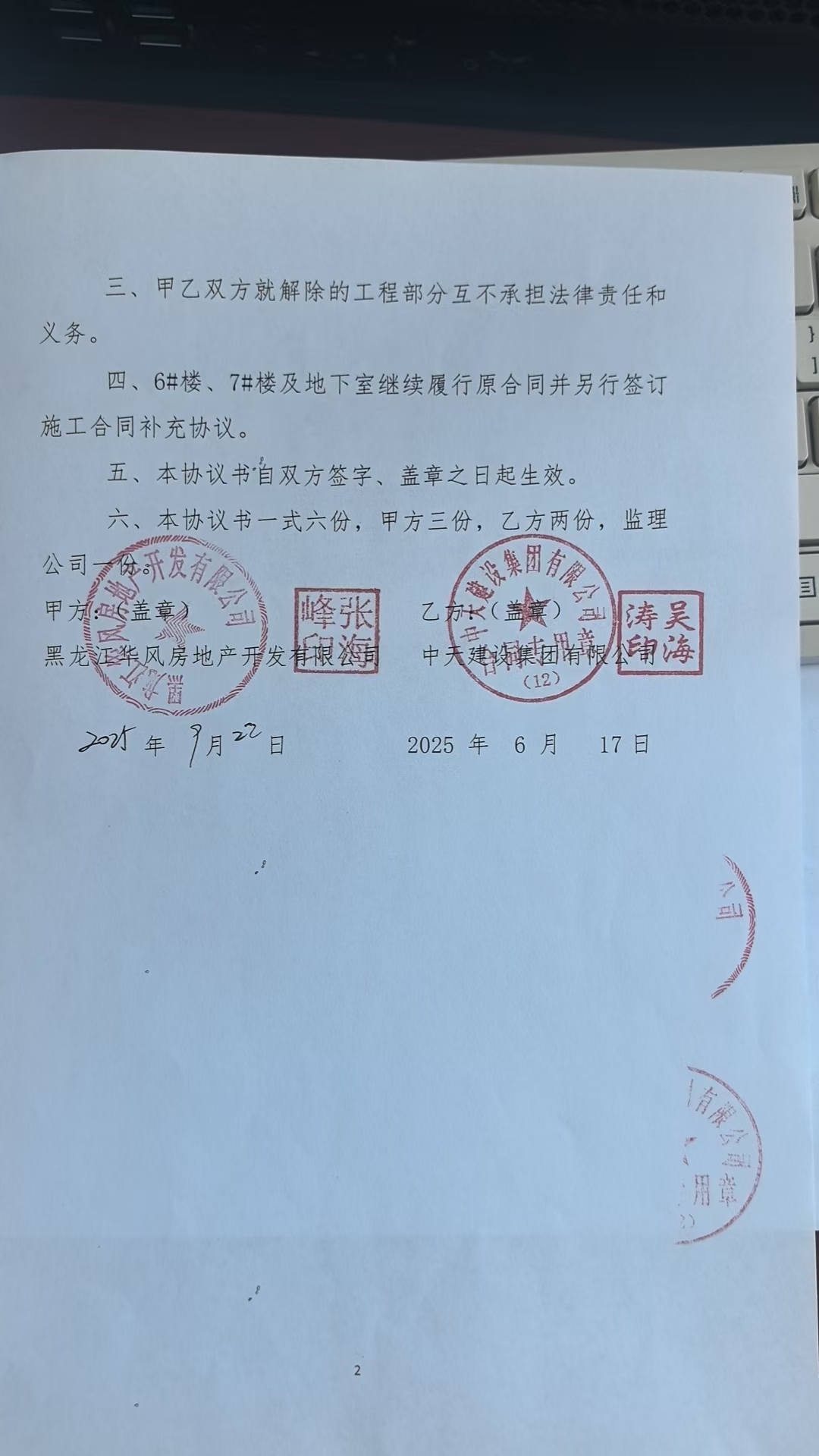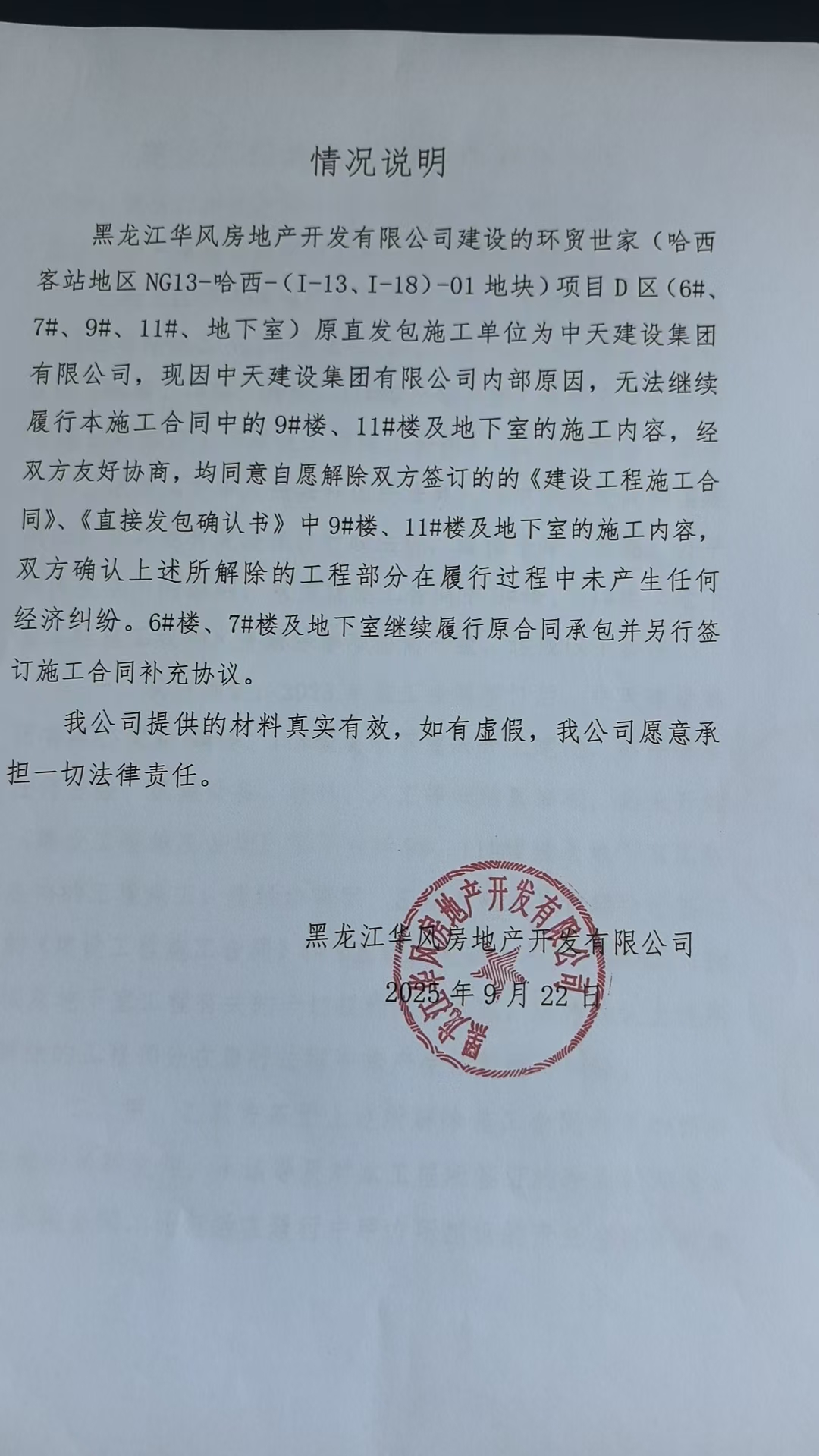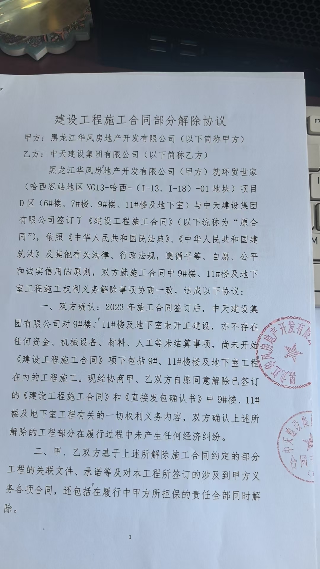 “环贸世家项目D区(6#、7#、9#、11#、地下室)”建设工程施工合同部分解除协议