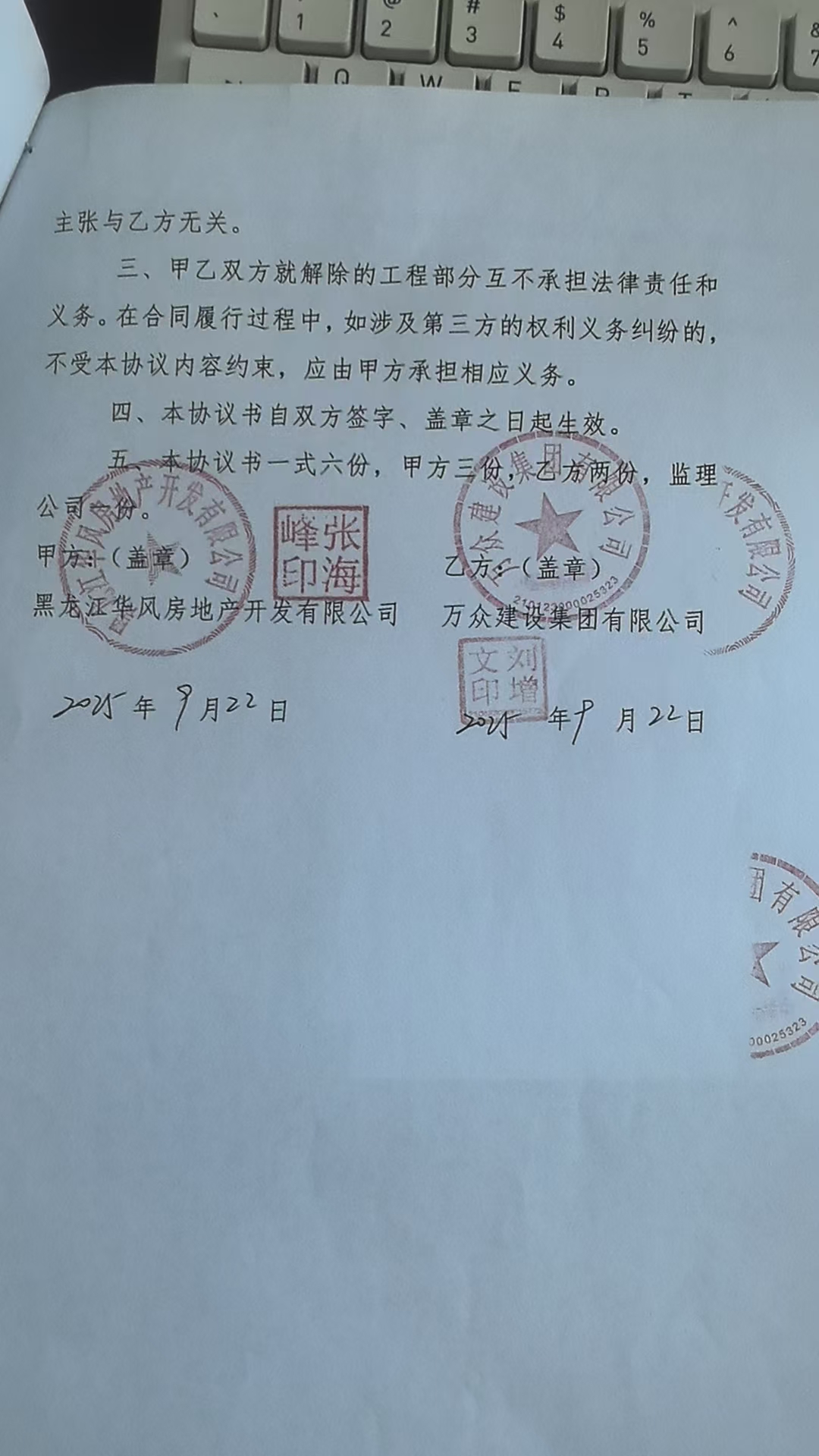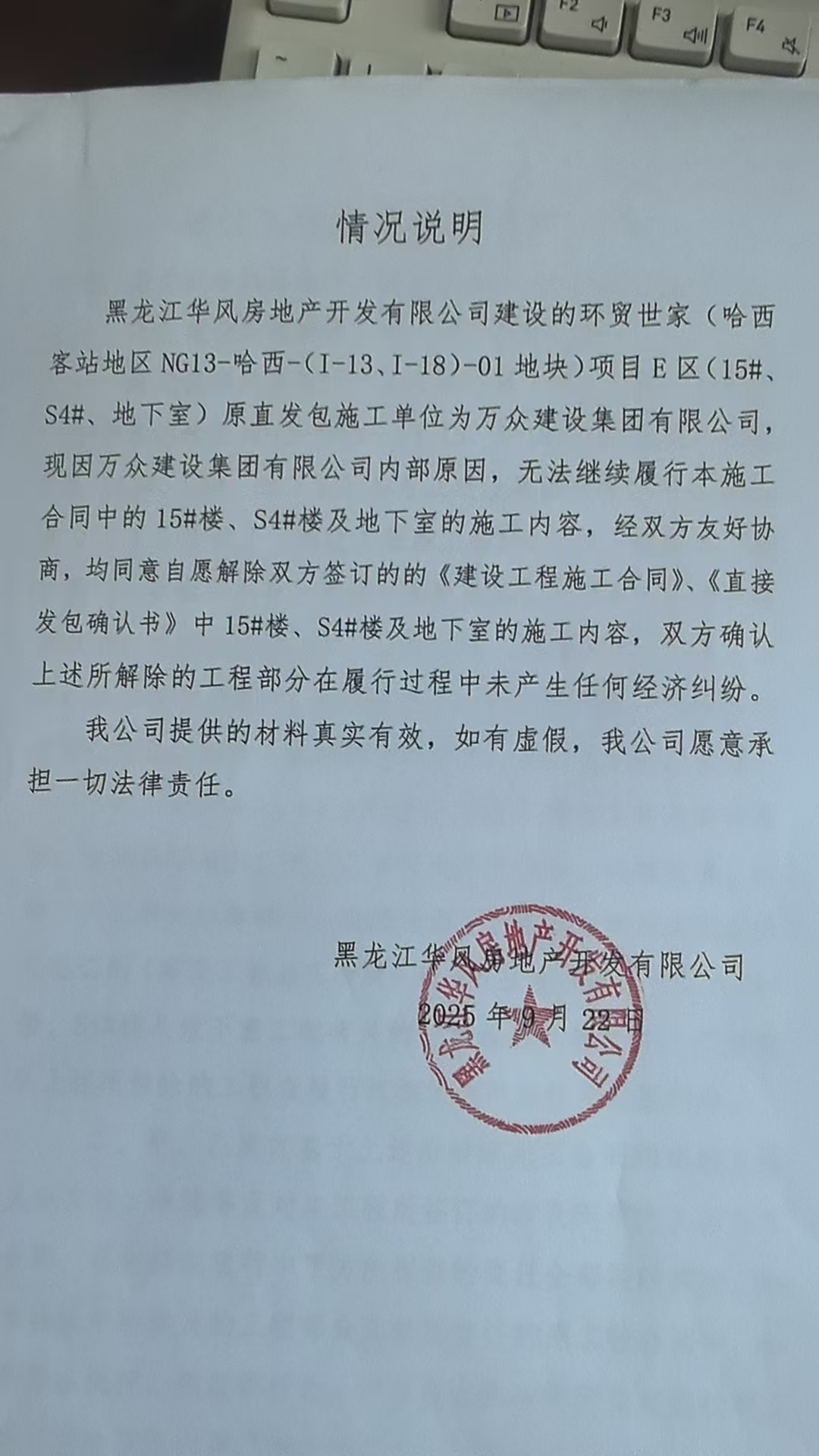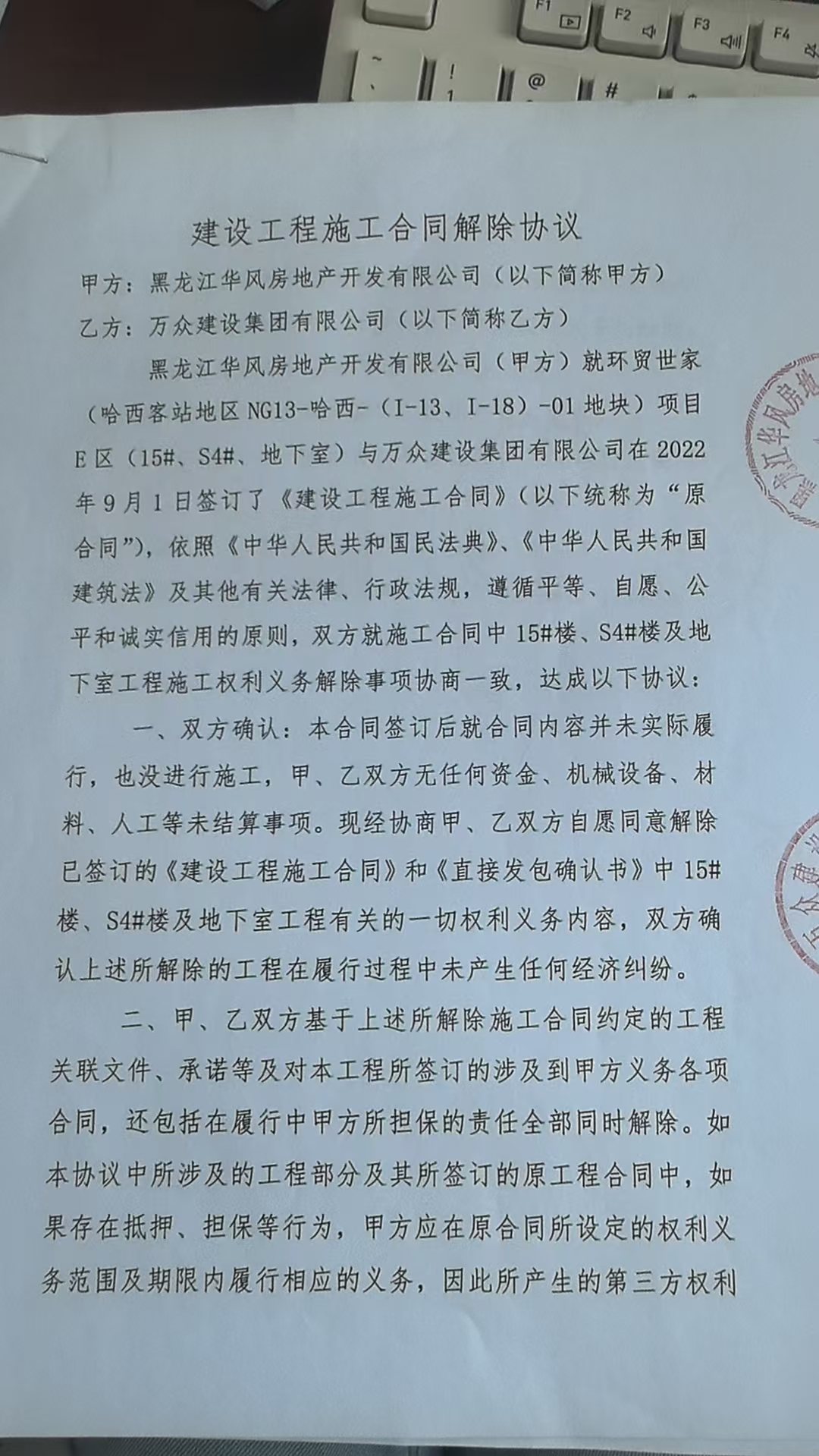 环贸世家项目E区(15#、S4#、地下室)建设工程施工合同解除协议