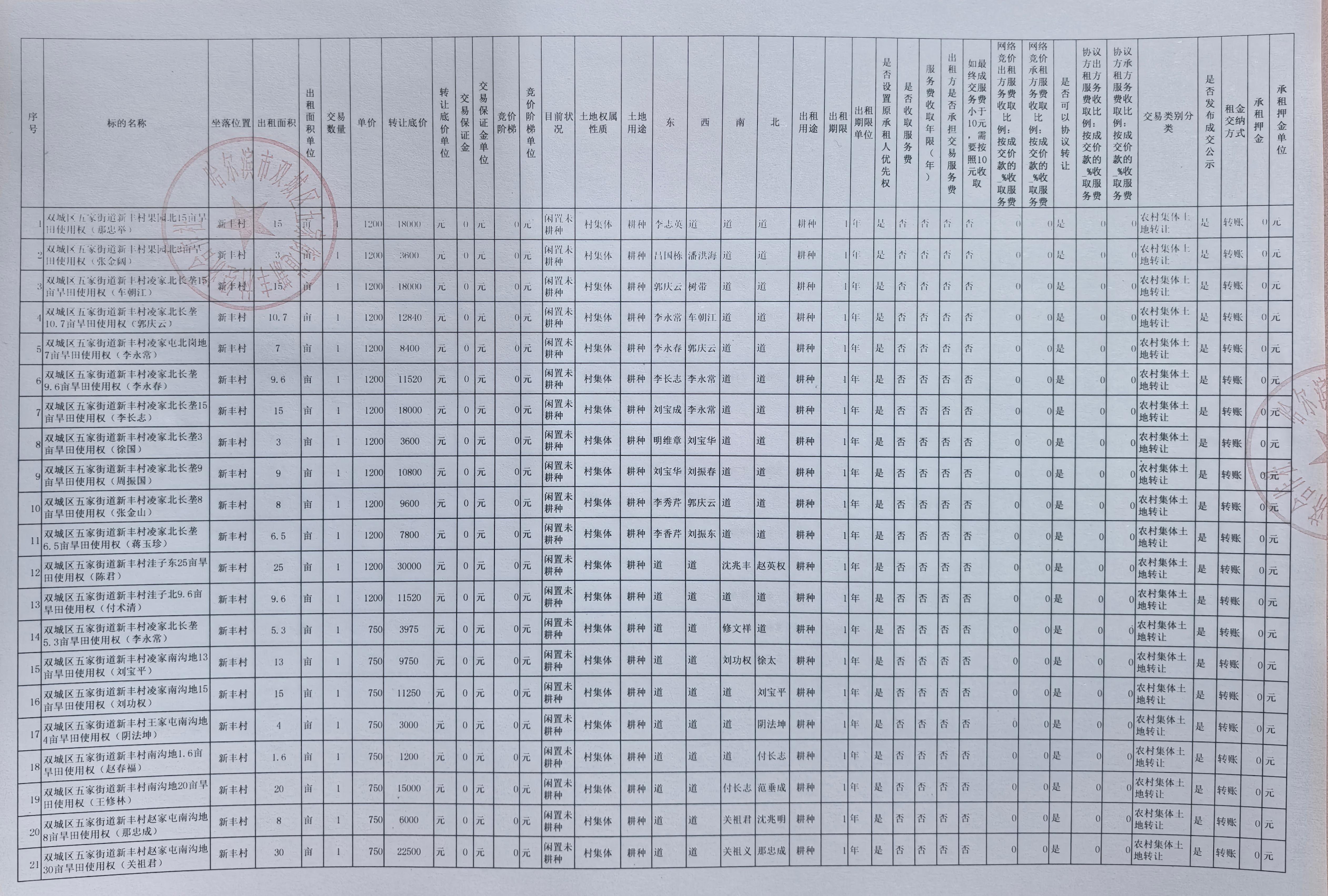 一、项目名称:哈尔滨市双城区五家街道新丰村经济合作社(36处)机动地发包项目(1年承包权)(项目编号:哈农交产(2026)第021号)