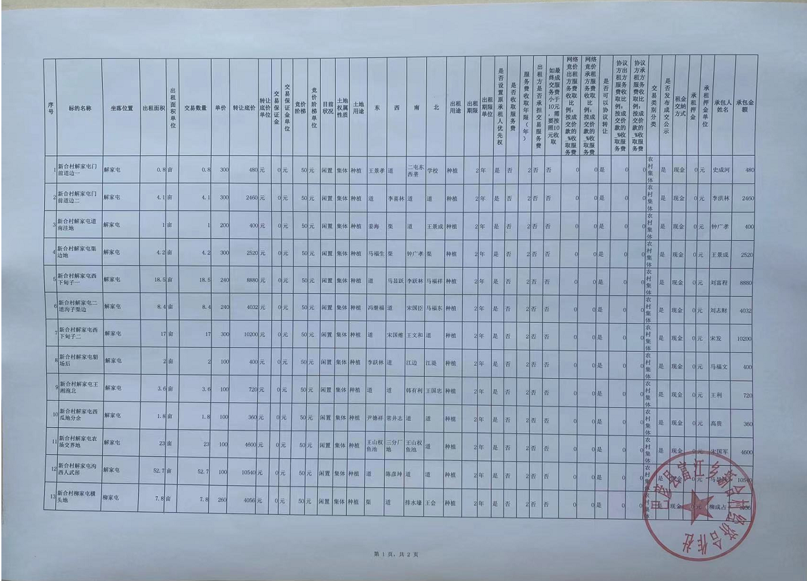 农村产权(机动地)项目成交公告