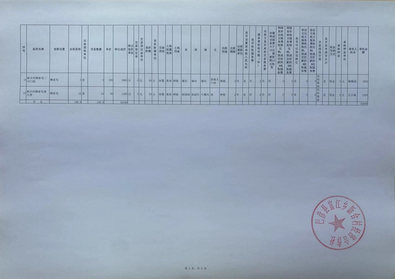 我所接受委托,对巴彦县富江乡新合村经济合作社(15处)机动地发包项目(2年承包权)哈农交产(2024)第449号进行信息披露,信息披露时间已结束,结果如下: