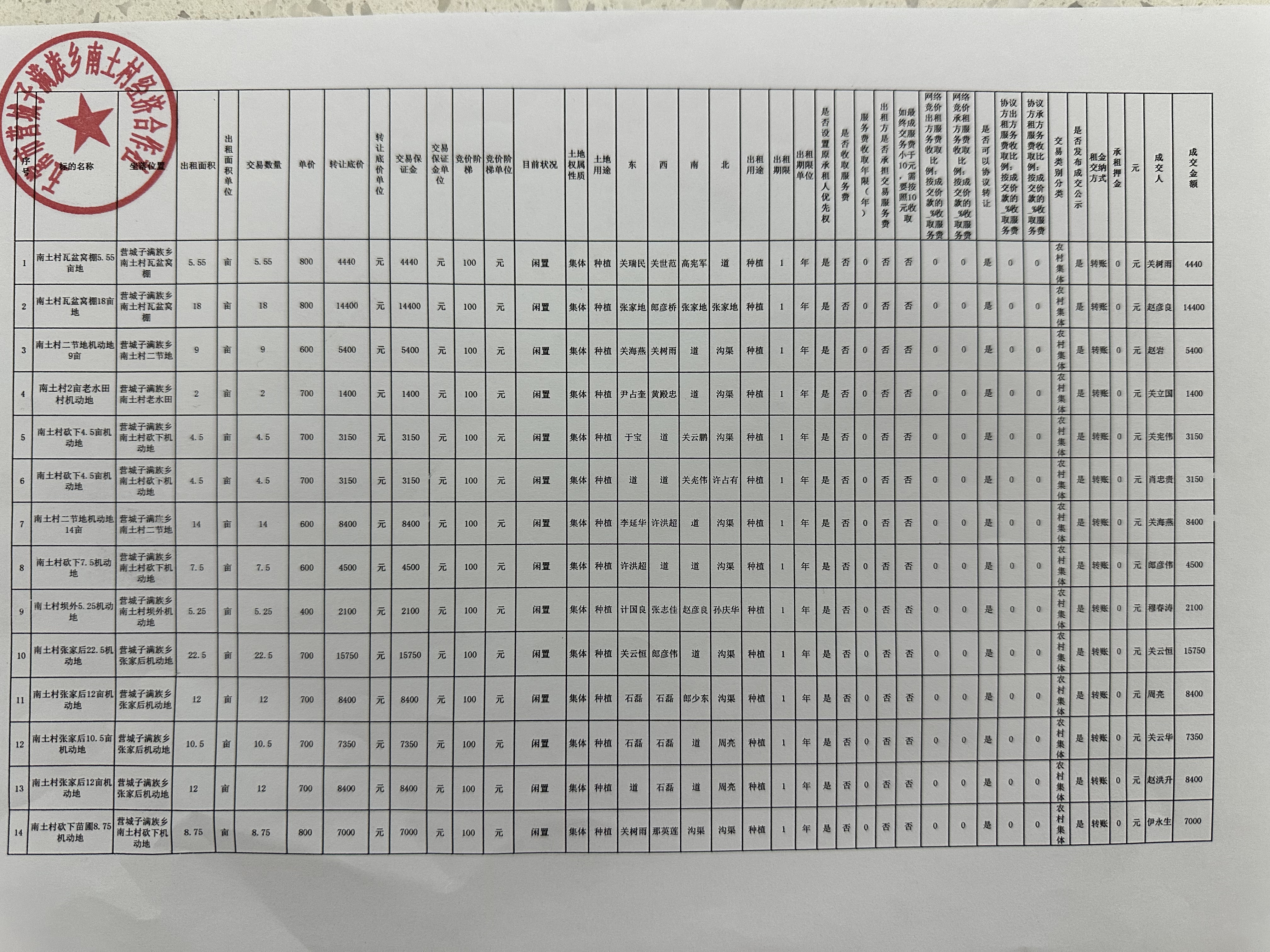我所接受委托,对五常市营城子满族乡南土村经济合作社(35处)机动地发包项目(1年承包权),哈农交产(2025)第037号进行信息披露,信息披露时间已结束,结果如下: