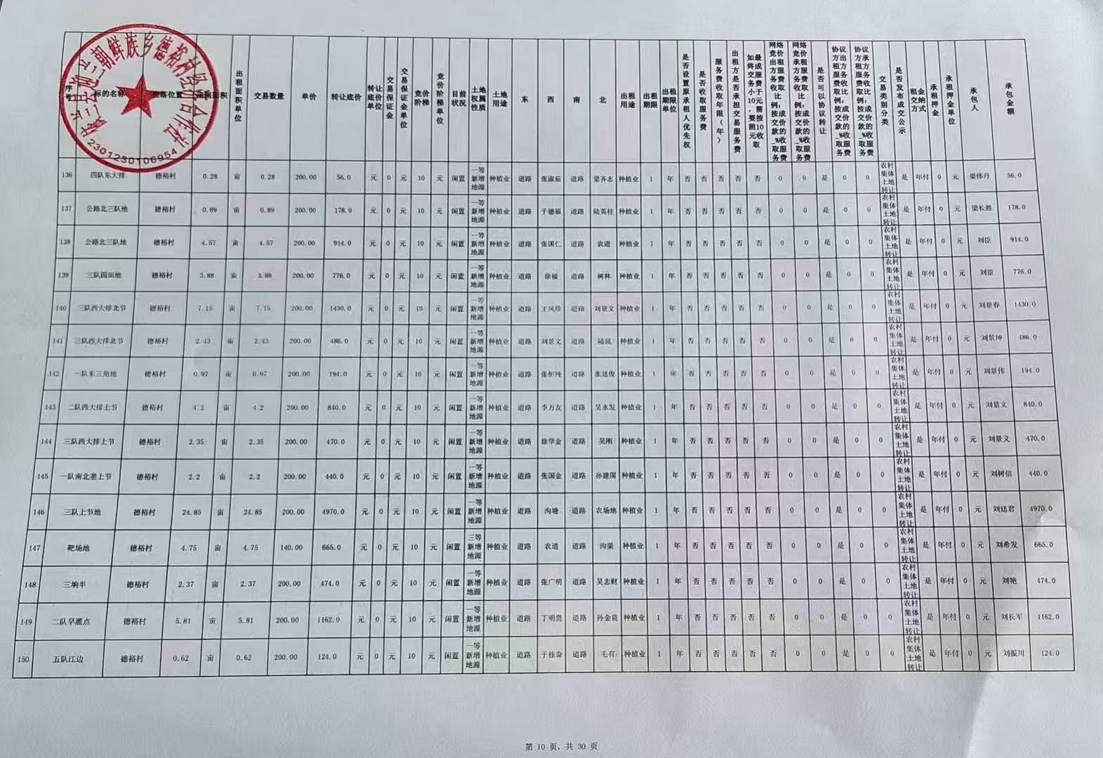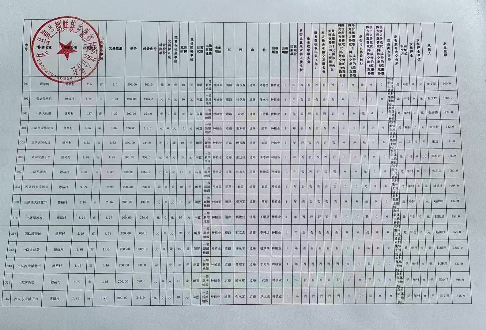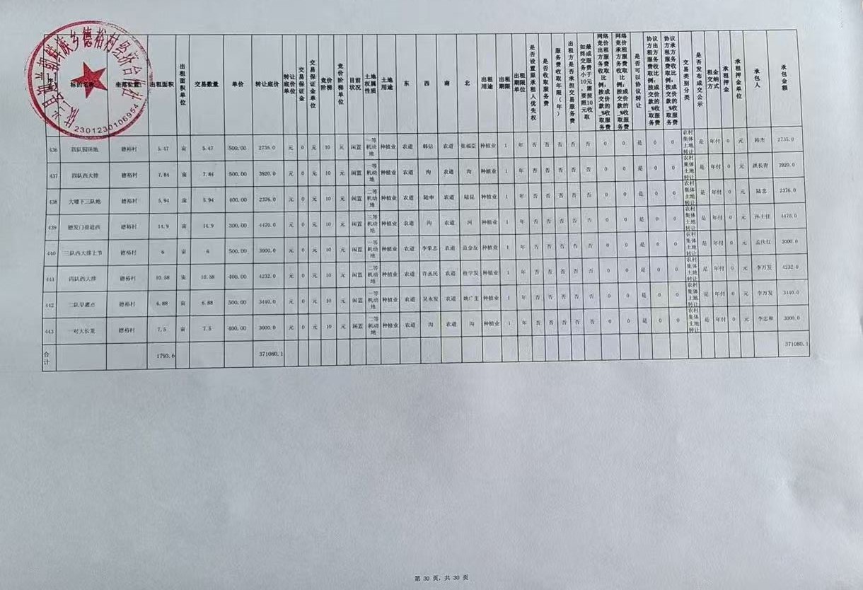 我所接受委托,对依兰县迎兰朝鲜族乡德裕村经济合作社(443处)机动地、小开荒、新增地源发包项目(1年承包权)哈农交产(2025)第349号进行信息披露,信息披露时间已结束,结果如下: