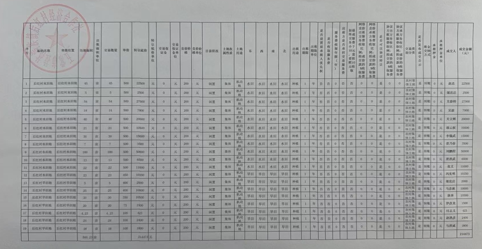 我所接受委托,对五常市拉林满族镇后红村经济合作社(19处)机动地发包项目(1年承包权),哈农交产(2026)第005号进行信息披露,信息披露时间已结束,结果如下: